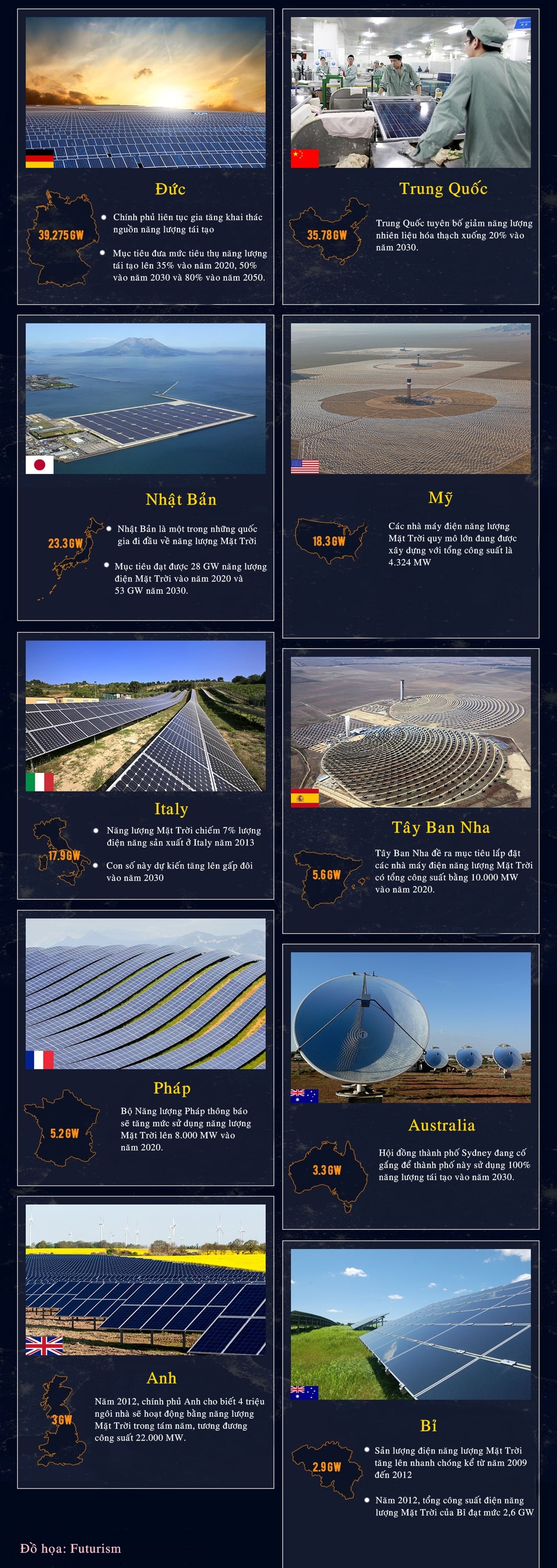 10 QUỐC GIA SỬ DỤNG NHIỀU NĂNG LƯỢNG MẶT TRỜI NHẤT TRÊN THẾ GIỚI