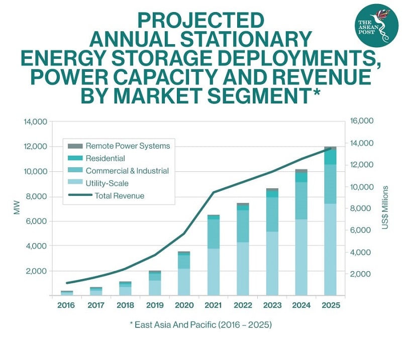 Trong ba năm tới, Ngân hàng Thế giới dự báo rằng công suất lưu trữ khoảng 10 GW có thể được thực hiện. Mặc dù phần lớn công suất dự kiến 10 GW có thể được đóng góp bởi công nghệ tích trữ thủy điện tích năng, nhưng có vẻ như các công nghệ pin đang bắt đầu có sự chuyển biến và thu hút sự đầu tư bởi tính ưu việt của nó. Nhưng để điều này xảy ra, cần phải có một mục tiêu lưu trữ năng lượng vì hầu hết các quốc gia trong ASEAN không có các quy tắc liên quan đến việc lưu trữ hoặc các cấu trúc thương mại cơ bản để hỗ trợ các công nghệ mới nổi như vậy.