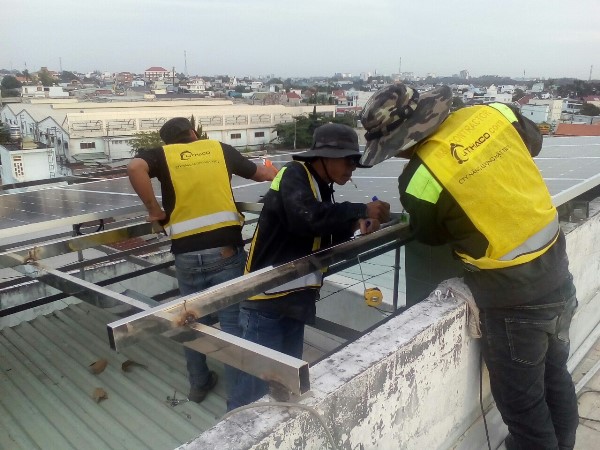 Tư vấn lắp đặt điện năng lượng mặt trời tại TpHCM - Đội ngũ nhân viên Lithaco chuẩn bị khung pin, giá đỡ.