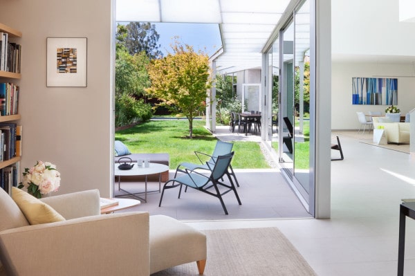 Một không gian giống như phòng trưng bày giúp kết nối các phòng và trở thành không gian chuyển tiếp giữa bên trong và bên ngoài ngôi nhà.