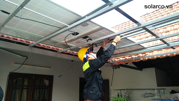 Hệ thống giàn khung tấm pin được đội cơ khí Lithaco làm kiên cố vững chắc